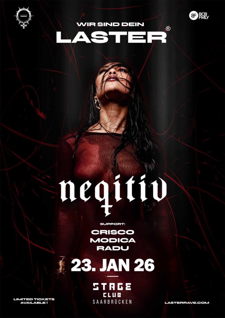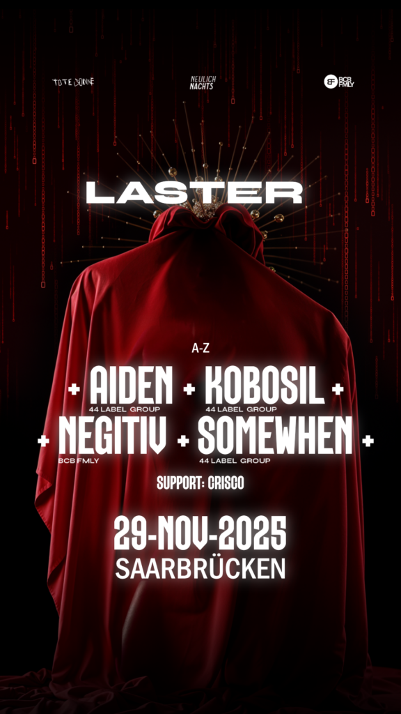 Der LASTER® Rave bringt am 29. November 2025 das Saarland zum Beben –zentral im Herzen von Saarbrücken – feiern wir die Techno-Community aus der Region. Mit Top-Acts wie Kobosil, AIDEN, Somewhen und Negitiv veranstalten wir die ultimative Nacht für alle Rave-Liebhaber*innen im Saarland, Luxemburg, Rheinland-Pfalz und darüber hinaus.